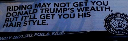 Und solange wird er vor allem für Unterhaltung sorgen. Egal, ob in den Medien oder in der Werbung, wie zum Beispiel auf dem Banner eines lokalen Fahrradgeschäfts im Silicon Valley. Ämüsant ist auch die Webseite politicalhumor.about.com – dort werden vor allem Trump, aber auch seine politischen Mitstreiter auf die Schippe genommen.